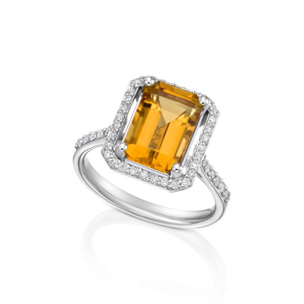 טבעת מהממת בעלת אבן מרכזית סיטרין, במקשל 2.97 קראט. ניתן לקבל בכל צבע אבן מכזית